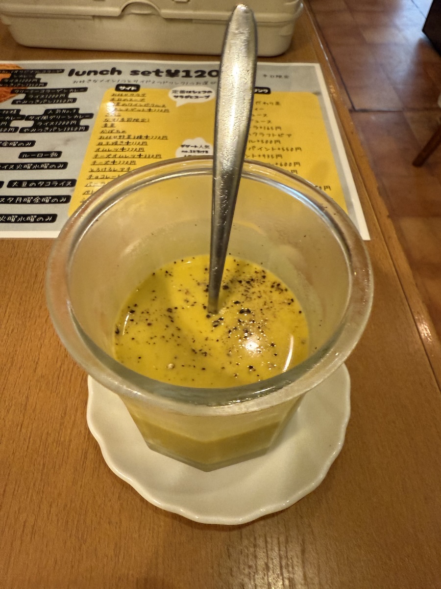 カレー紹介の前に、美味しいスープ・サラダが登場