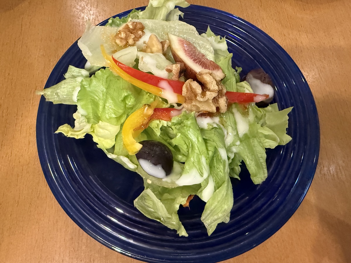 サラダは新鮮なレタス・パプリカにイチジク、ブドウ、ナッツが散りばめられていました。