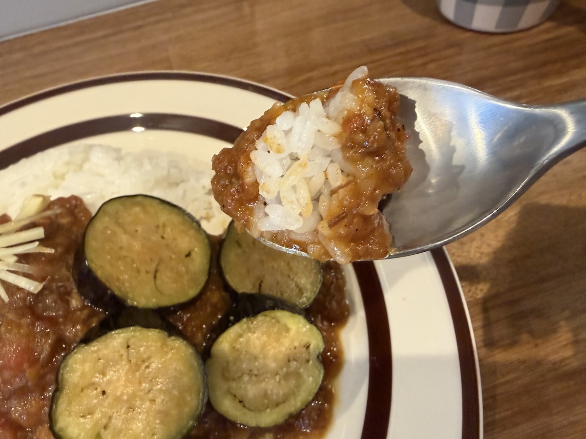 脂分が控えめで、スパイスの刺激はあるのに「するする」と胃袋に吸い込まれていく……まさにルーの魔法を感じる一皿です。