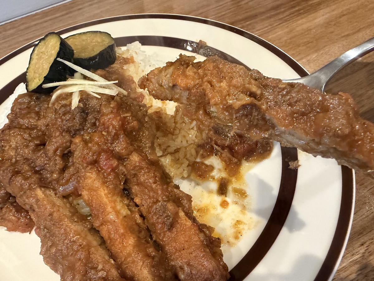むしろ、熱々のルーをまとわせることで、サクサク感が減らないようにしているのではないか――そんなふうに感じるほどでした。