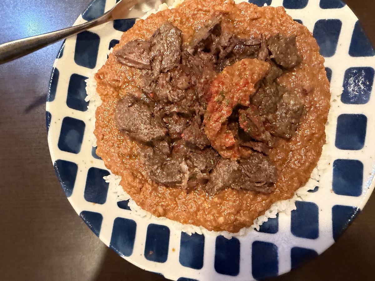 さっそく一口🍛筋肉質な赤身で、臭みやクセは感じません。