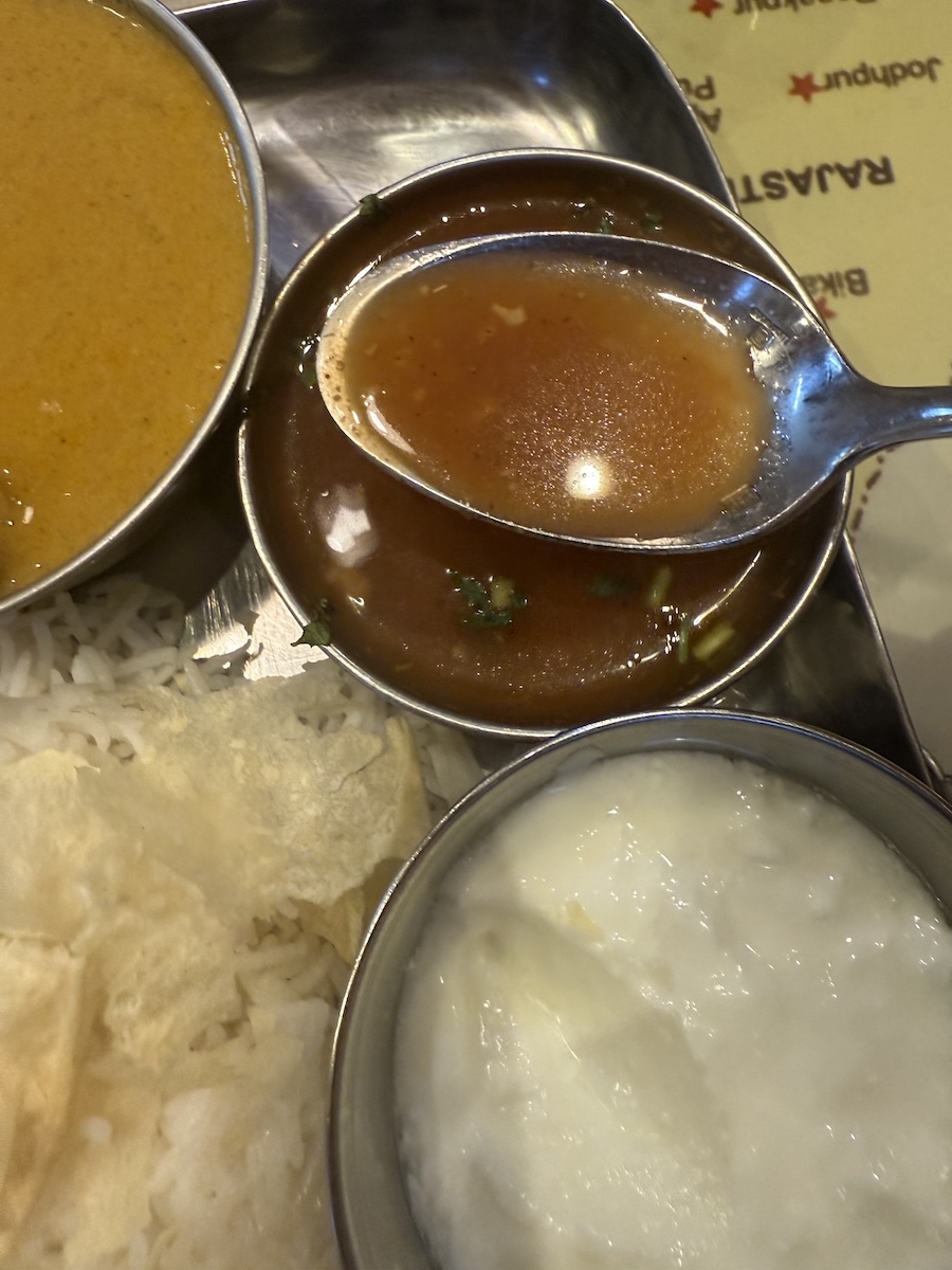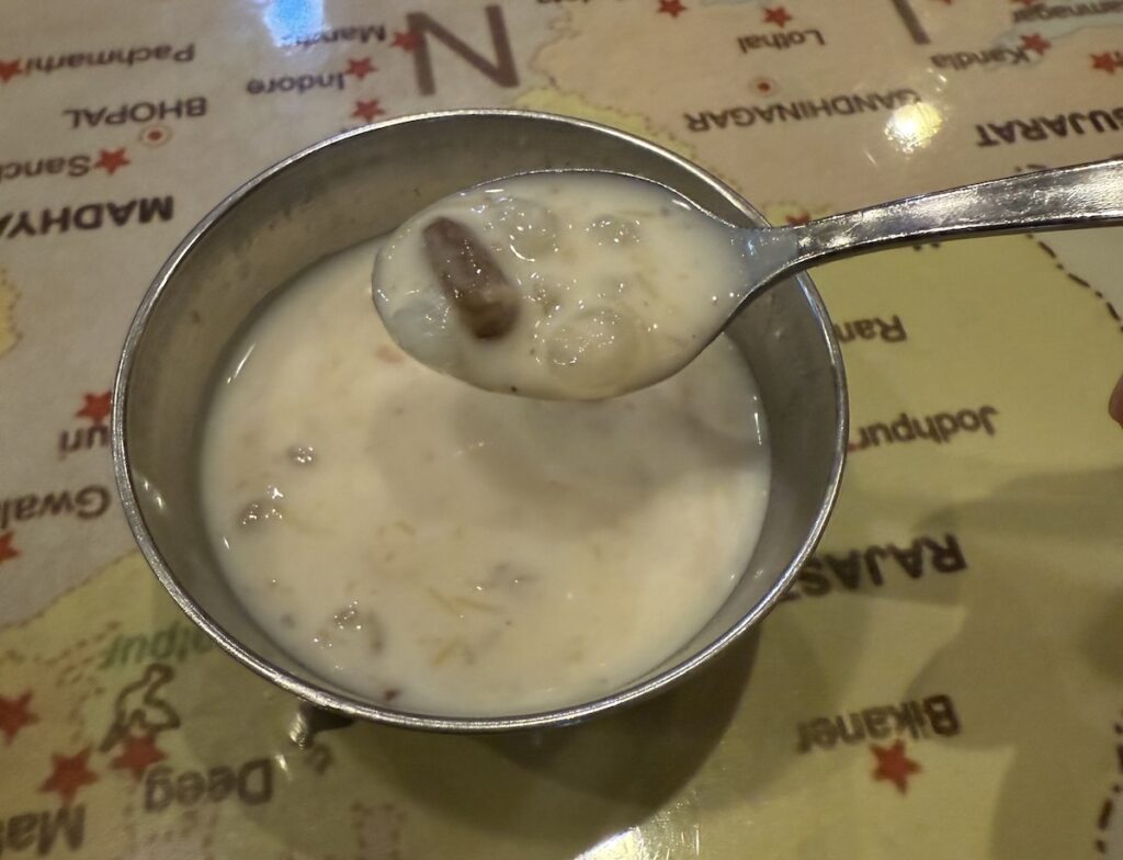 この日は、ミールスはデザートまで含めて1枚のプレートで提供されました。