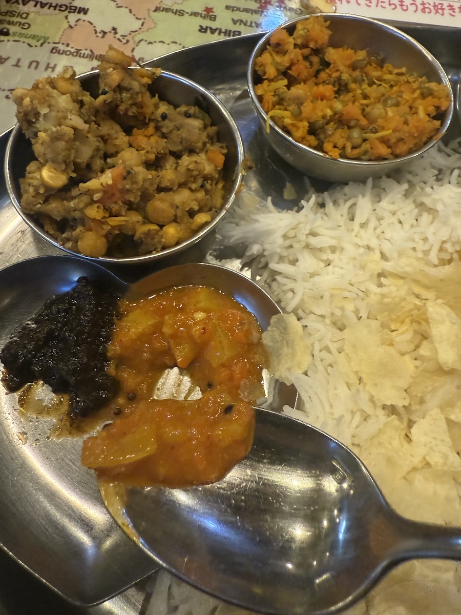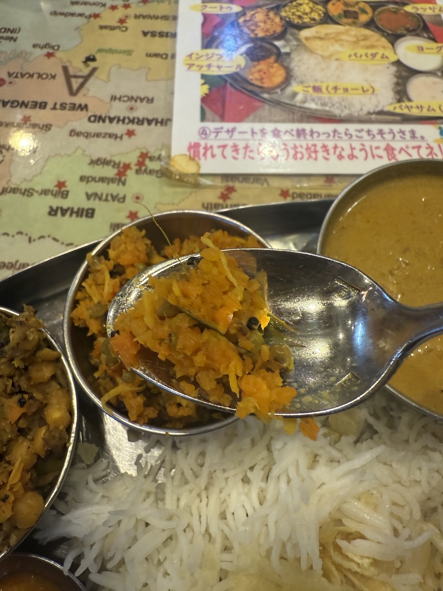 品数が多いミールスで、一皿の中で味の組み合わせを試しやすいかなぁと思いました。