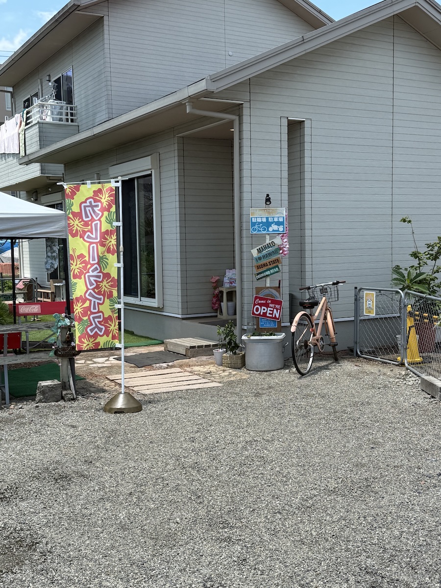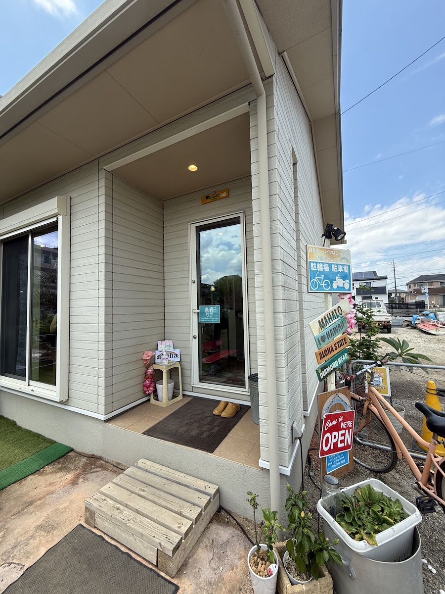 駅から10分ほど歩くと、目の前にカラフルな旗、看板、コースターなどが目に止まるお家を発見。