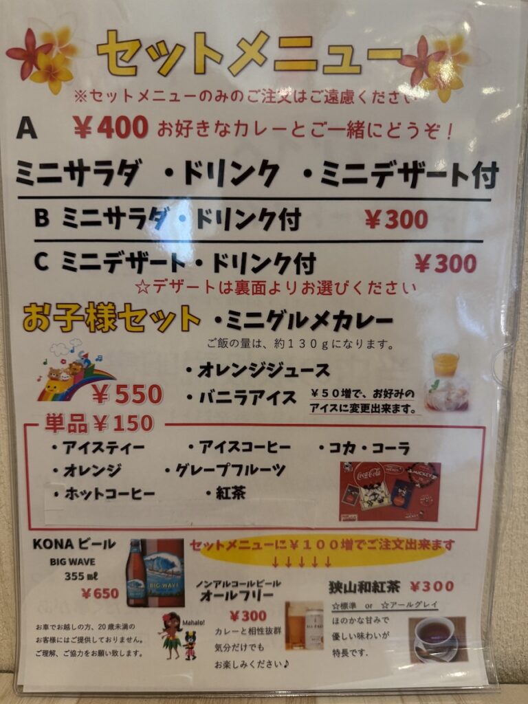 狭山茶の独創的なカレーと、ハワイアンの空気感というコンセプトの“融合”が、心地よい余韻を生む特徴的なお店でした。