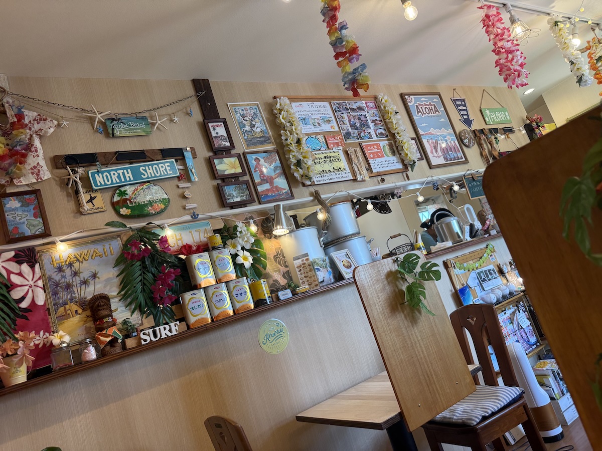 「りとるほっと」はハワイをコンセプトに、ハワイアン寄りの洋楽がゆるやかに流れ、卓上の小物や食器も写真映えするお店でした。