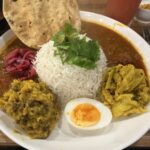 中央の卵黄を割ってカレーと合わせながら食べるようです。