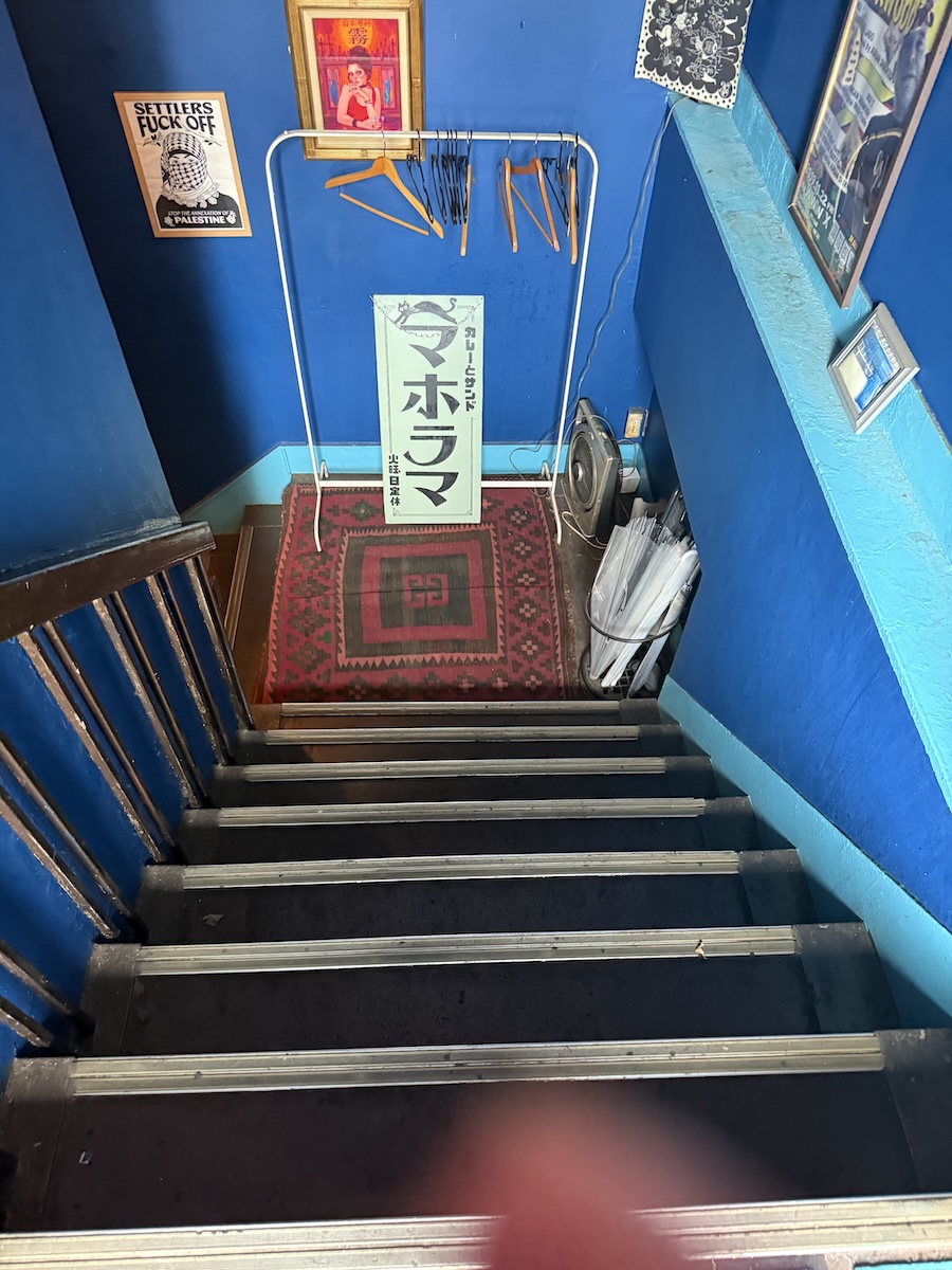 その先の地下へ続く階段の先には「マホラマ」のシンプルで大きな看板が出迎えてくれます。