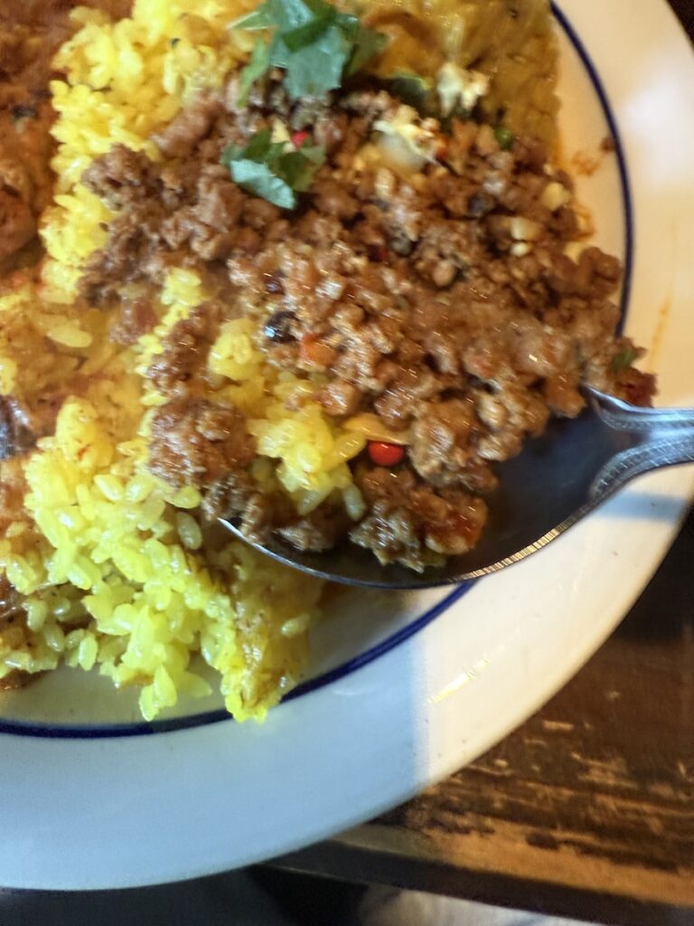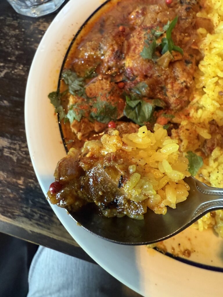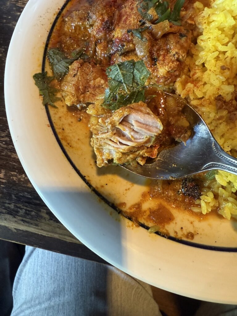 ホロホロと崩れる肉の食感と、深みあるスパイスの余韻が長く続き、でもまたすぐに次のひと口を運びたくなる……そんな魅力がありました。