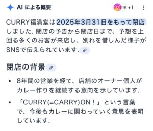 「2025年3月で閉店」でしたかぁ。インスタグラムまで調べておけば良かったよ…。