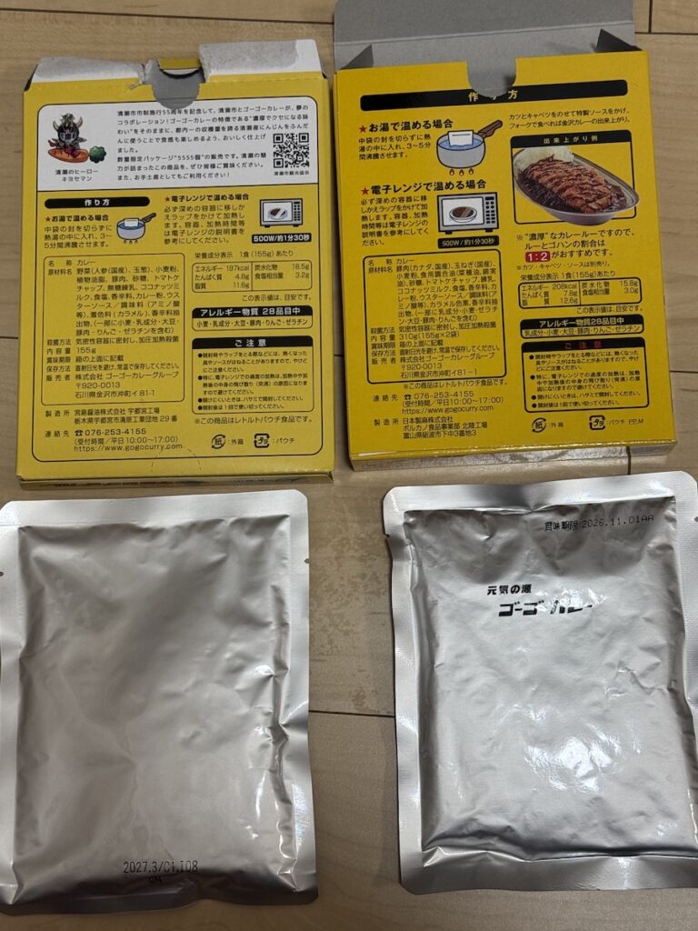 この記事では、限定のキヨセゴーゴーカレーと、定番の 「元気の源 ゴーゴーカレー(中辛)」を食べ比べ。