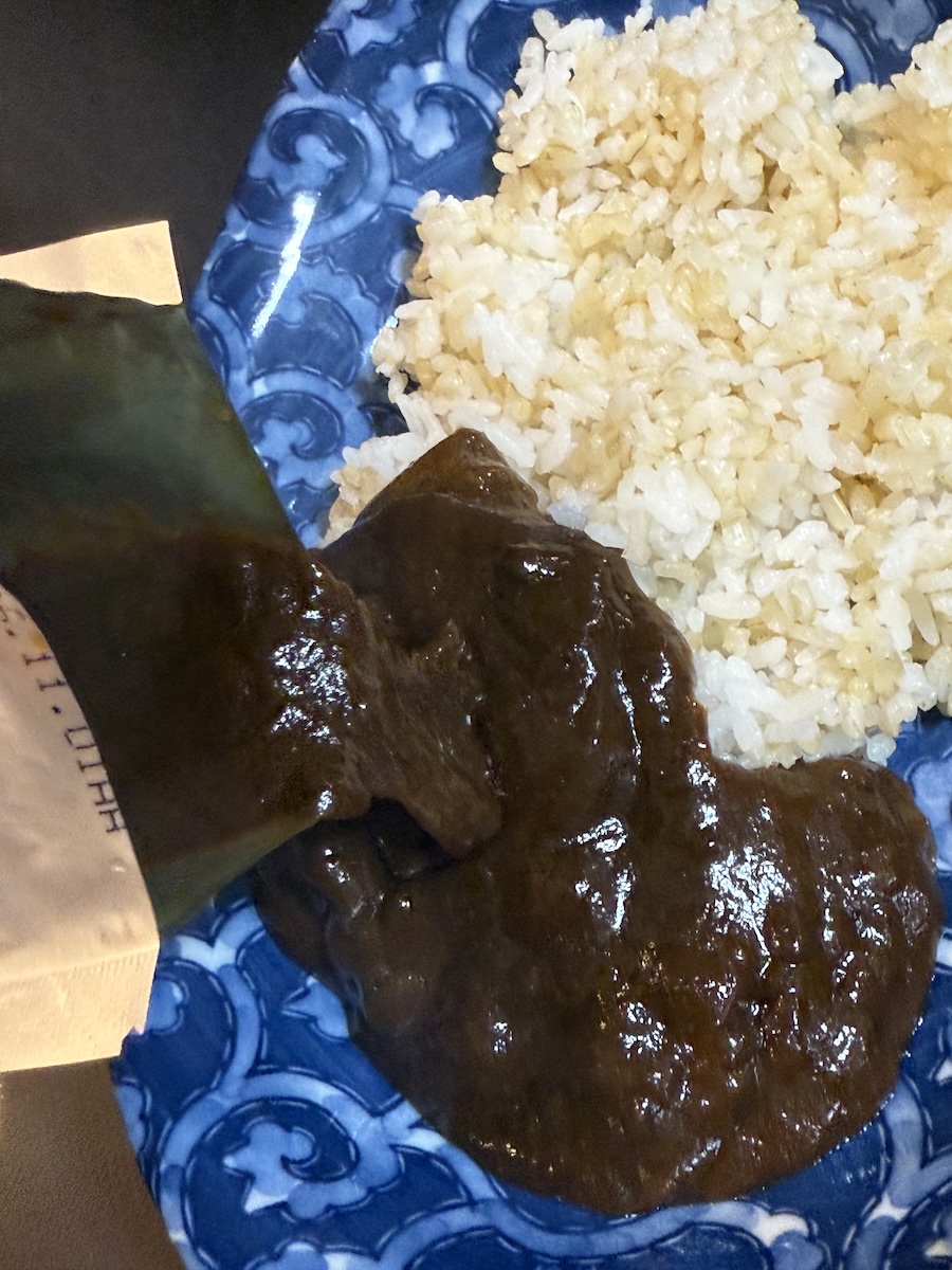 - オリジナル版:色味は黒が強め。サラッと流れるようにライスへ。スムースな表面感。