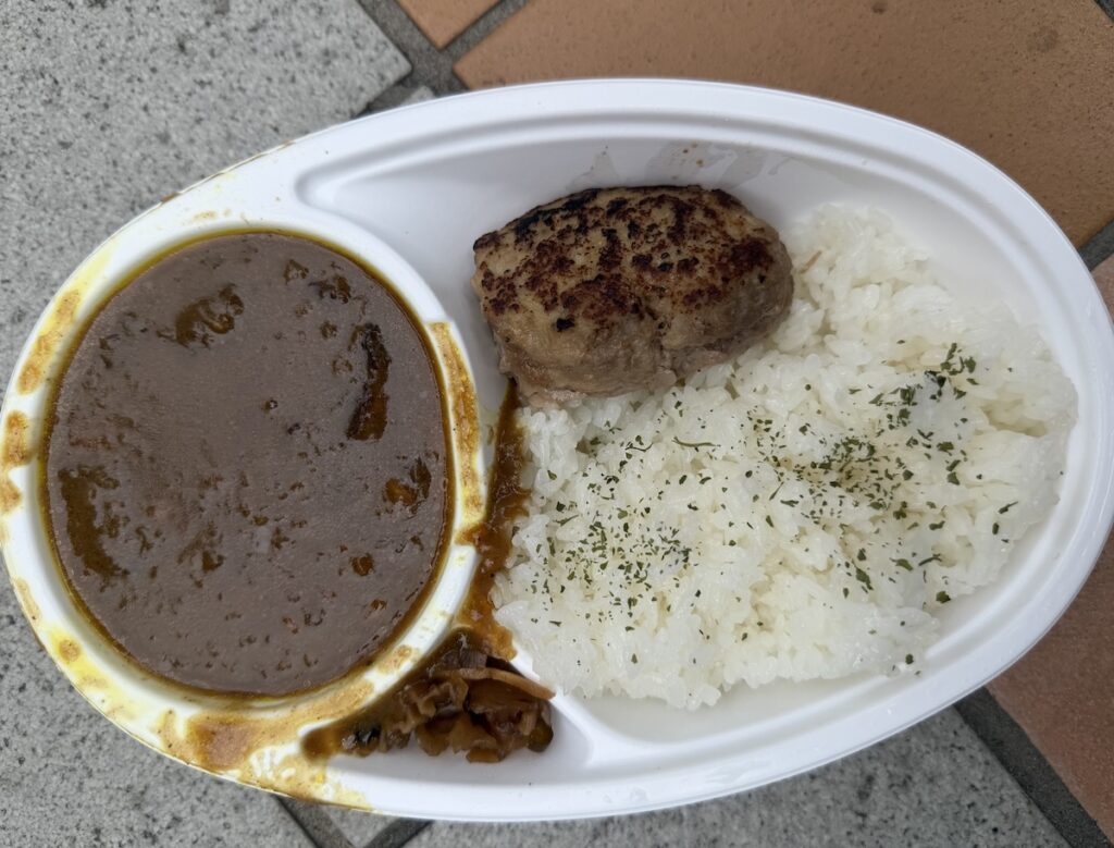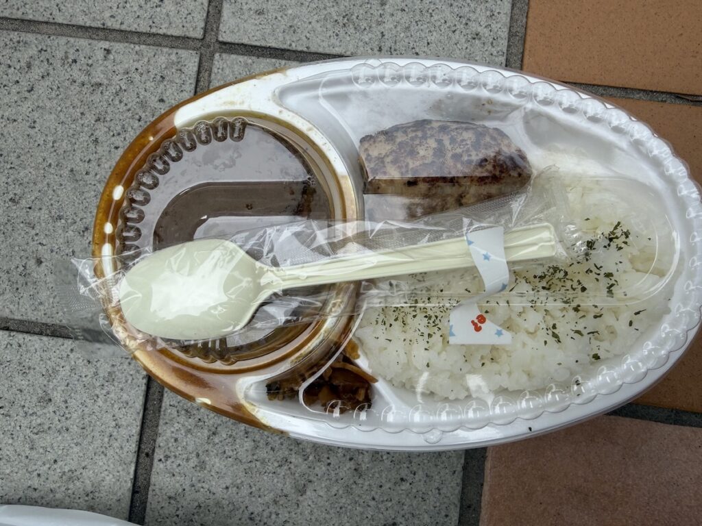 それから5分くらいして、ついにハンバーグトッピングしたカレーライスをゲットです🍛
