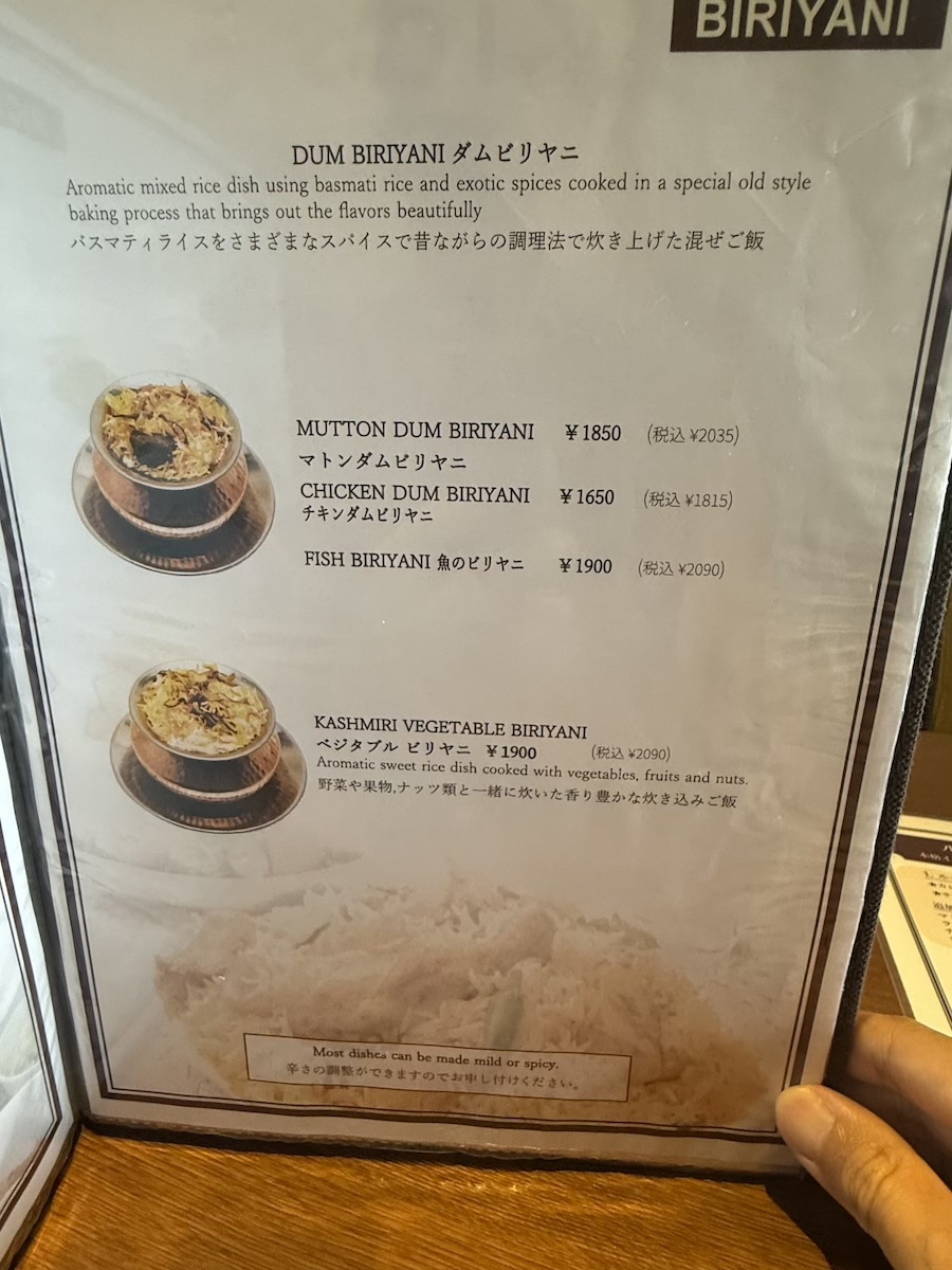 最初に手渡されたのはランチメニューでしたが、そこにはビリヤニの記載はなく…。