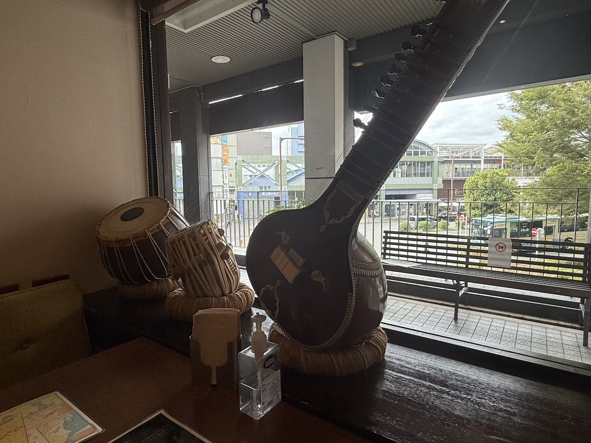 シタールやタブラといった北インドの楽器が置かれていて、空間そのものが異国情緒に包まれています。