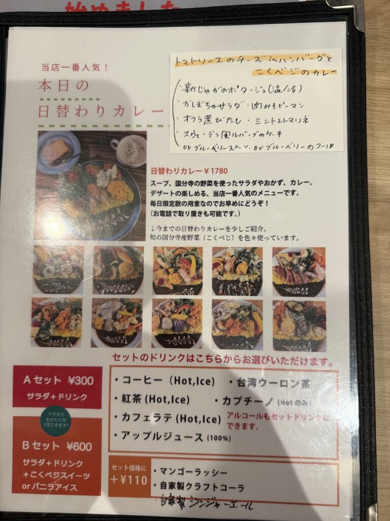 メニューにはカレーのほか、副菜・デザート付きという説明もあって、早くも期待が高まりました。