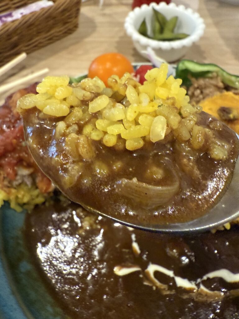 口に含むと、とろみのあるルーがまろやかに広がり、コク深さの奥にしっかりとスパイスが広がります。